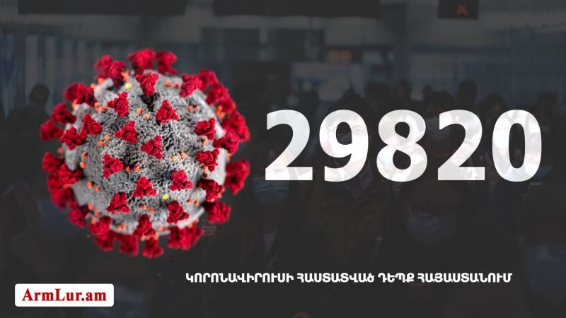 Հայաստանի մէջ «Քորոնա» ժահրով հիւանդներու թիւը հասաւ 29 820-ի