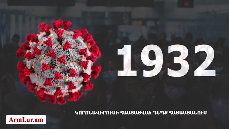 Հայաստանի մէջ «Քորոնա» Ժահրով վարակուած անձերու հաստատուած թիւը հասաւ 1932-ի