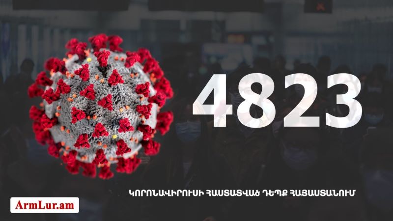 Հայաստանի մէջ «Քորոնա» Ժահրով վարակուած անձերու հաստատուած թիւը հասաւ 4823-ի