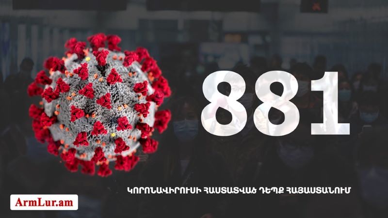 Հայաստանի մէջ «Քորոնա» Ժահրով վարակուած անձերու հաստատուած թիւը հասաւ 881-ի