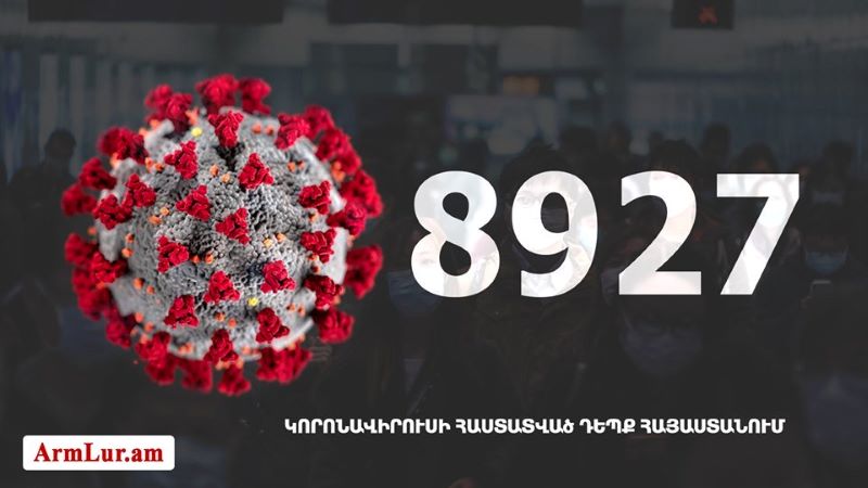 Հայաստանի մէջ «Քորոնա» Ժահրով վարակուած անձերու հաստատուած թիւը հասաւ 8927 -ի