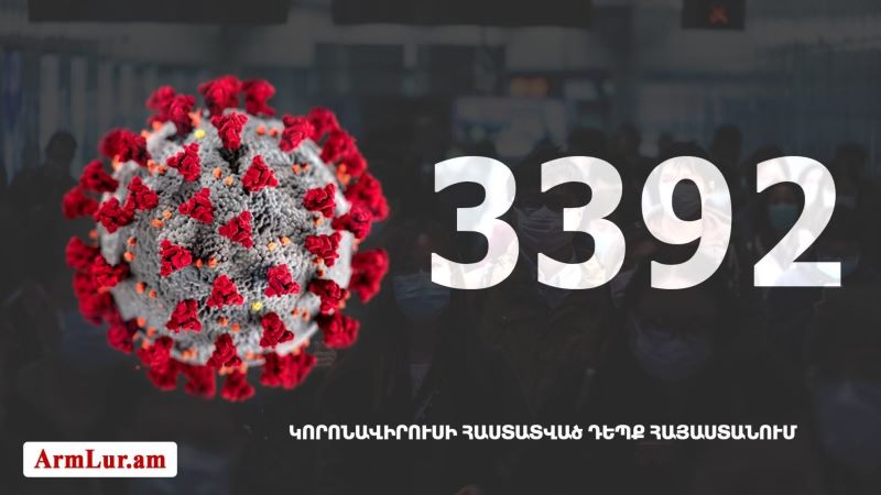 Հայաստանի մէջ «Քորոնա» Ժահրով վարակուած անձերու հաստատուած թիւը հասաւ 3392 -ի