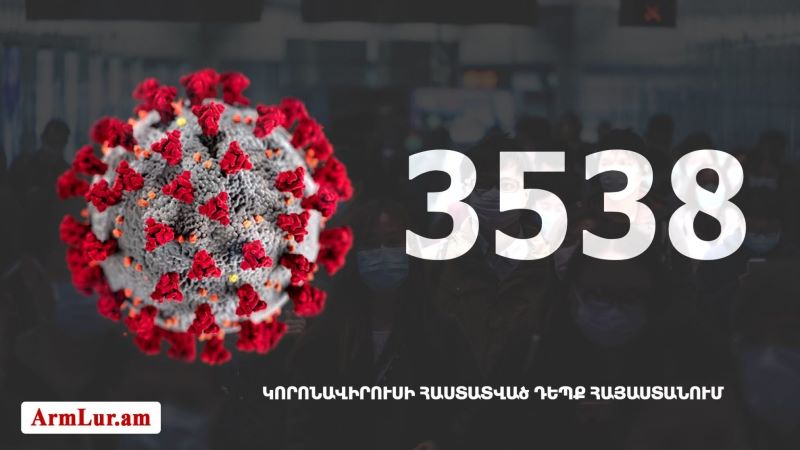 Հայաստանի մէջ «Քորոնա» Ժահրով վարակուած անձերու հաստատուած թիւը հասաւ 3538 -ի