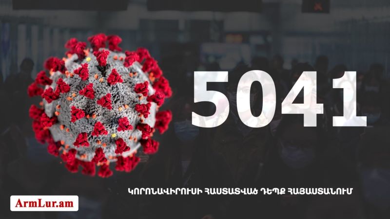 Հայաստանի մէջ «Քորոնա» Ժահրով վարակուած անձերու հաստատուած թիւը հասաւ 5041-ի