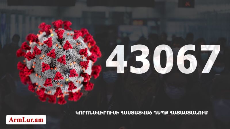 Հայաստանի մէջ «Քորոնա» ժահրով հիւանդներու թիւը հասաւ 43 067-ի