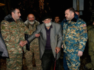 Որոնողափրկարարական աշխատանքներու շնորհիւ յայտնաբերուած 2 քաղաքացի՝ հայր եւ որդի Միքայէլ եւ Գեղամ Պետրոսեանները, ռուս խաղաղապահներու եւ կարմիր խաչի միջազգային կոմիտէի ուղեկցութեա