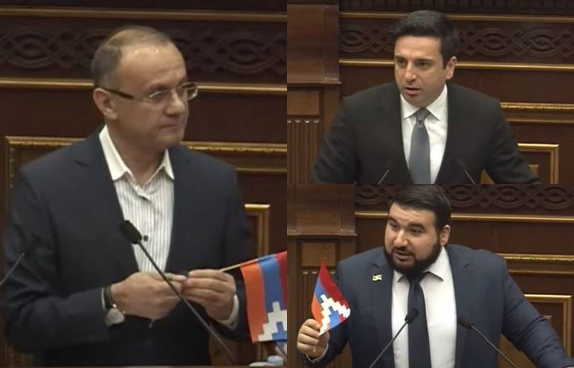 Ան եւ ընդդիմադիր միւս պատգամաւորները Արցախի դրօշներ տեղադրեցին սեղաններուն: