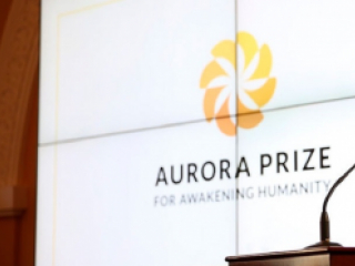 «Աւրորա» մարդասիրական նախաձեռնութեան համահիմնադիրներ Նուպար Աֆէեան, Վարդան Գրեգորեան, Ռուբէն Վարդանեան եւ «Աւրորա» մրցանակի Ընտրող յանձնաժողովի նախագահ՝ Լորտ Արա Տարզին յայտարար