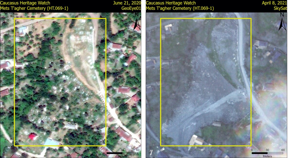 Կովկասեան ժառանգութեան դիտորդական խումբը (CHW) կ'ահազանգէ, որ ոչնչացուած է Ատրպէյճանի վերահսկողութեան տակ անցած Հադրութի շրջանին մէջ գտնուող Մեծ Թաղեր գիւղի հայկական գերեզմանատունը։