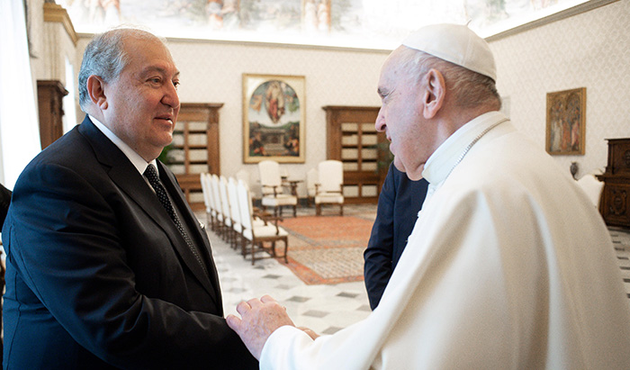 Նախագահը նաեւ երախտագիտութեամբ նշած է, որ Հայաստանի համար ծանր ու դժուարին մարտահրաւէրներու այս փուլին Վատիկանը համերաշխութեան ձեռք մեկնած է: Որպէս անոր վկայութեան օրինակներ Արմէն Սարգսեան բերած է պատերազմի օրերուն ու անկէ յետոյ Հռոմի պապի հնչեցուցած խաղաղութեան ուղերձները, ինչպէս նաեւ հայ ռազմագերիները ազատ արձակելու կոչը: