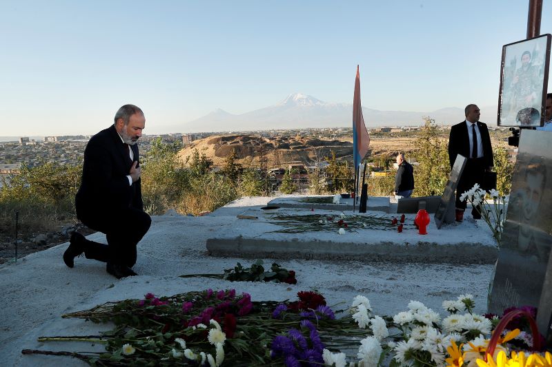 Վարչապետ Նիկոլ Փաշինեան 27 Սեպտեմբերի վաղ առաւօտեան՝ ժամը 7:30-ի շուրջ, այցելած է «Եռաբլուր» զինուորական պանթէոն։ Ան ծաղիկներ դրած է նահատակուած զինծառայողներու շիրիմներուն: