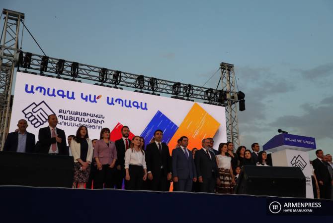 «Այսօրուայ հանրահաւաքով մենք ամփոփում ենք նախընտրական քարոզարշաւը, ընտրութիւնները, եւ յոյս ունեմ, որ մենք փաստացի այսօր կ’արձանագրենք, որ Նոյեմբերի 9-ին Հայաստանում արձանագրուած ներքաղաքական ճգնաժամը յաղթահարուած է, եւ մենք վաղուանից վերադառնում ենք լիարժէք աշխատանքի, բայց պայմանները եւ միջավայրն այսօր էականօրէն փոխուած են, որովհետեւ ՀՀ-ն մեր կառավարութեանը, քաղաքական այս խումբին տուել է մանտաթ` երկրում հաստատելու օրէնքի եւ իրաւունքի դիկտատուրա, ժողովուրդն իրականացրել է պողպատէ յեղափոխութիւն», – Յունիս 21-ին, Հանրապետութեան հրապարակի մէջ «Քաղաքացիական պայմանագիր» կուսակցութեան հանրահաւաքի ժամանակ յայտարարեց վարչապետի պաշտօնակատար՝ Նիկոլ Փաշինեանը: